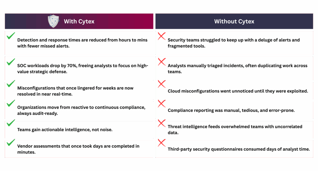 Ditch the old ways and build a team of AI agents that work for you. Cytex AI agents work with your data and integrate with your tools to improve your cybersecurity posture without the need for additional resources.