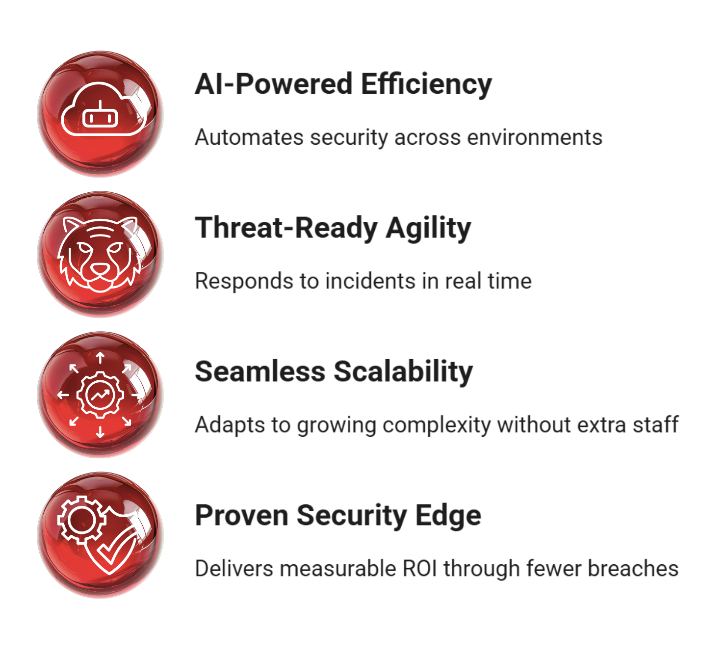 AI agents execute predefined plays instantly, containing breaches before they spread and turning hours of manual work into automated precision.